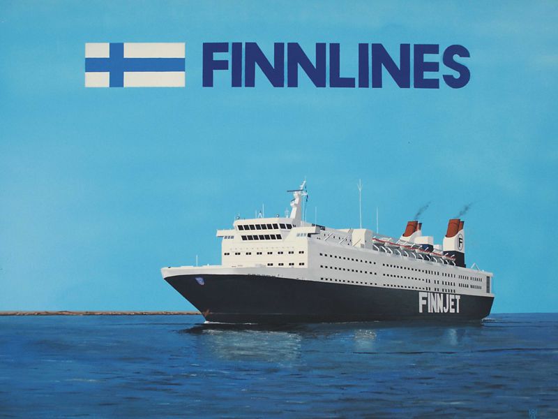Als letzte Bild der "Fährschiff-Serie" habe ich 1985 die "Finnjet" gemalt. Sie war damals mit 33 Knoten (ca. 60 km/h) die schnellste Fähre auf der Ostsee. Nachdem der Liniendienst auf der Ostsee 2005 eingestellt wurde, soll die als "Da Vinci" (als Kreuzfahrtschiff ?) unter der Flagge der Club Cruise umgebaut werden. Natürlich ist auch die "Finnjet" mit Gouache auf einem auf einem mit Spraylack erzeugten Hintergrund gemalt.