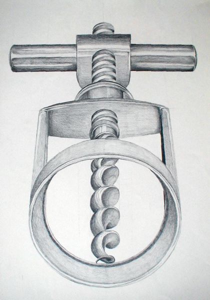 Korkenzieher Auch diese Zeichnung ist im Kunst-Leistungskurs entstanden - allerdings weiss ich die Aufgabenstellung nicht mehr so genau. Ich meine, wir sollten damals Küchengeräte zeichnen ...