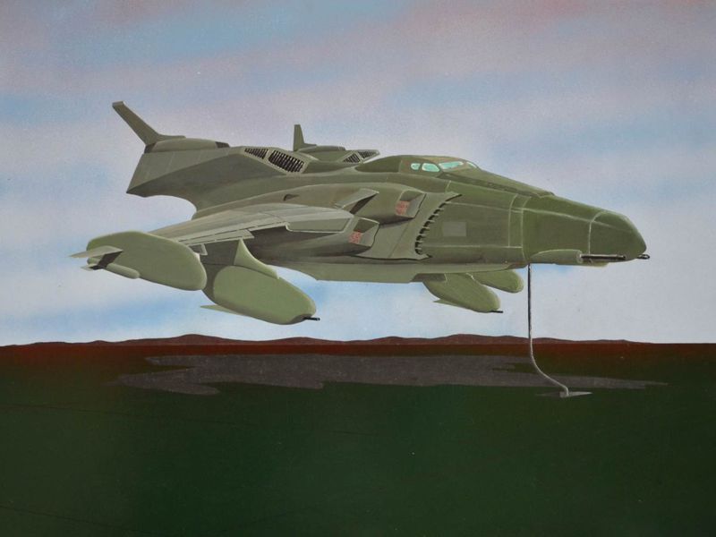 Als ich den “Gaussi-Raumjäger” das erste Mal auf einem Poster gesehen hatte, war ich von der Form dieses Raumschiffs fasziniert. Einige Zeit später habe ich mir dann auch das Buch "Mechanismo" von Harry Harrison gekauft, das viele Science-Fiction-Illustrationen enthält, unter anderem auch den "Gaussi-Raumjäger" auf einer Doppelseite und in einer Explosionzeichnung. Einige Zeit später habe ich dann noch eine zweite Version gemalt (siehe Mechanismo II) und vor Kurzem eine am Computer gemalte Version (Mechanismo III).