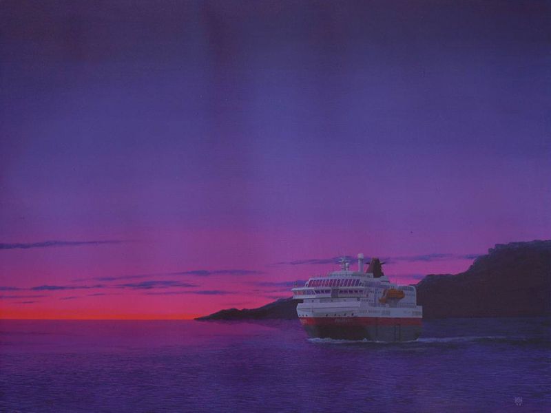 Dieses Bild ist in Vorfreude auf eine irgendwann geplante Reise mit den Hurtigruten entstanden. Eigentlich wollte ich auf diesem Bild auch noch das Polarlicht darstellen. Allerdings hatte ich das Gefühl, dass das Bild dann mit den Farben des Polarlichtes (grün, türkis) viel zu überladen wirkt - und so habe ich es bei der Darstellung der Polarnacht belassen.