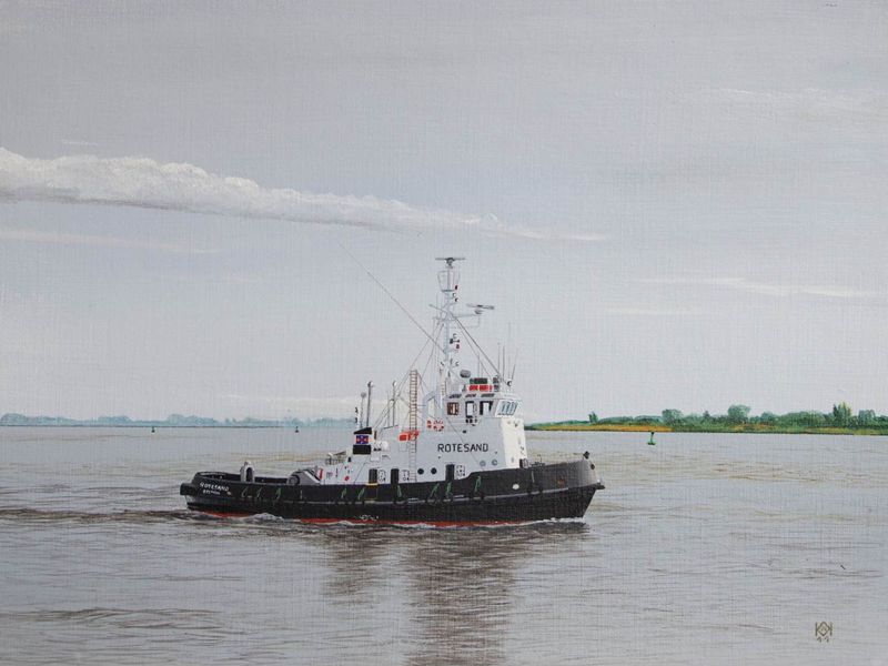 Ein kleines Bild von einem Schlepper aus Bremerhaven, der "Rote Sand". Der Schlepper "Rotesand" wurde 1976 gebaut. Er ist 30,38 m lang, 8,80 m breit und hat einen Tiefgang von 4,50 m. Er wird durch zwei Dieselmotoren mit jeweils 882 kw angetrieben und erreicht bis zu 12,2 kn.