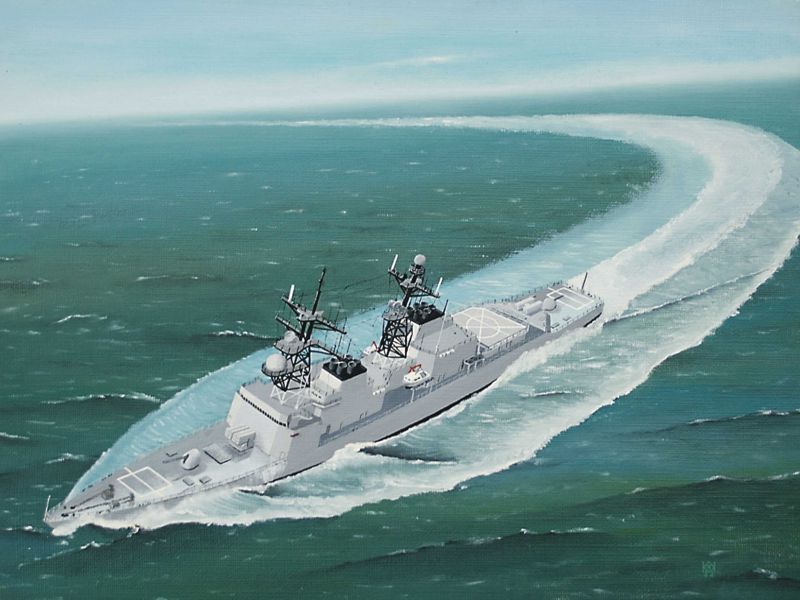 Das Bild selbst zeigt einen amerikanischen Zerstörer der "Spruance"-Klasse.