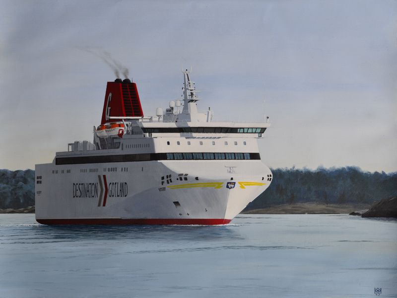 Dieses Bild zeigt die schwedische Fähre "Visby" der Reederei Destination Gotland. Das Schiff verkehrt auf der Linie Visby-Nynäshamn oder der Linie Visby-Oskarshamn. Sie ist 195,8 m lang, 25,0 m breit, mit 29.746 BRZ vermessen und erreicht eine Geschwindigkeit von 28,5 kn. Erbaut wurde die Visby 2003 in Guangzhou.