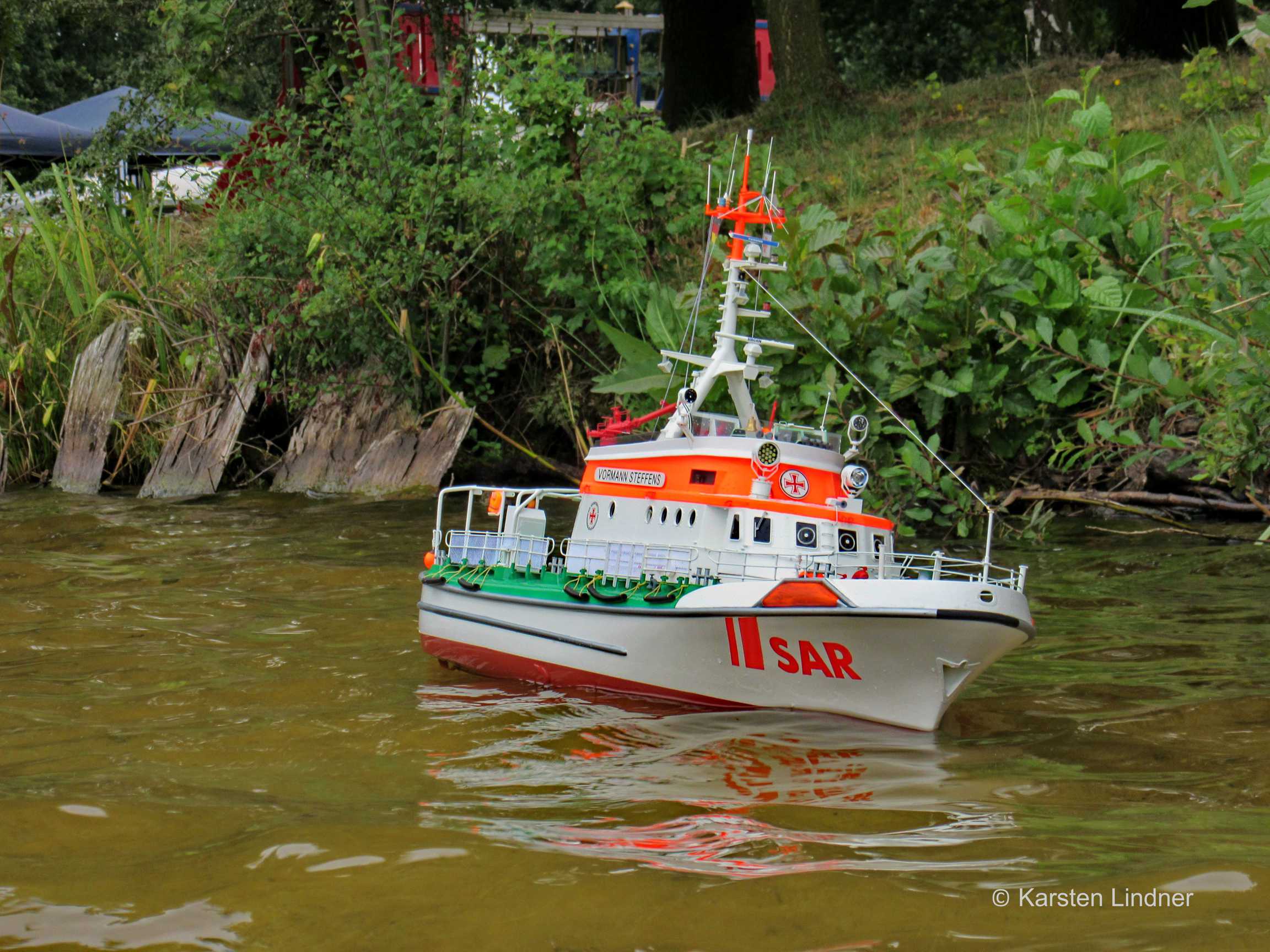 Vormann Steffens Das Modell der Vormann Steffens ist aus dem Bausatz des Seenotrettungkreuzers Berlin der Firma robbe entstanden. Wesentliches Unterscheidungsmerkmal gegenüber der Berlin sind einerseits die runden Fenster im Decksaufbau und andererseits das Tochterboot.